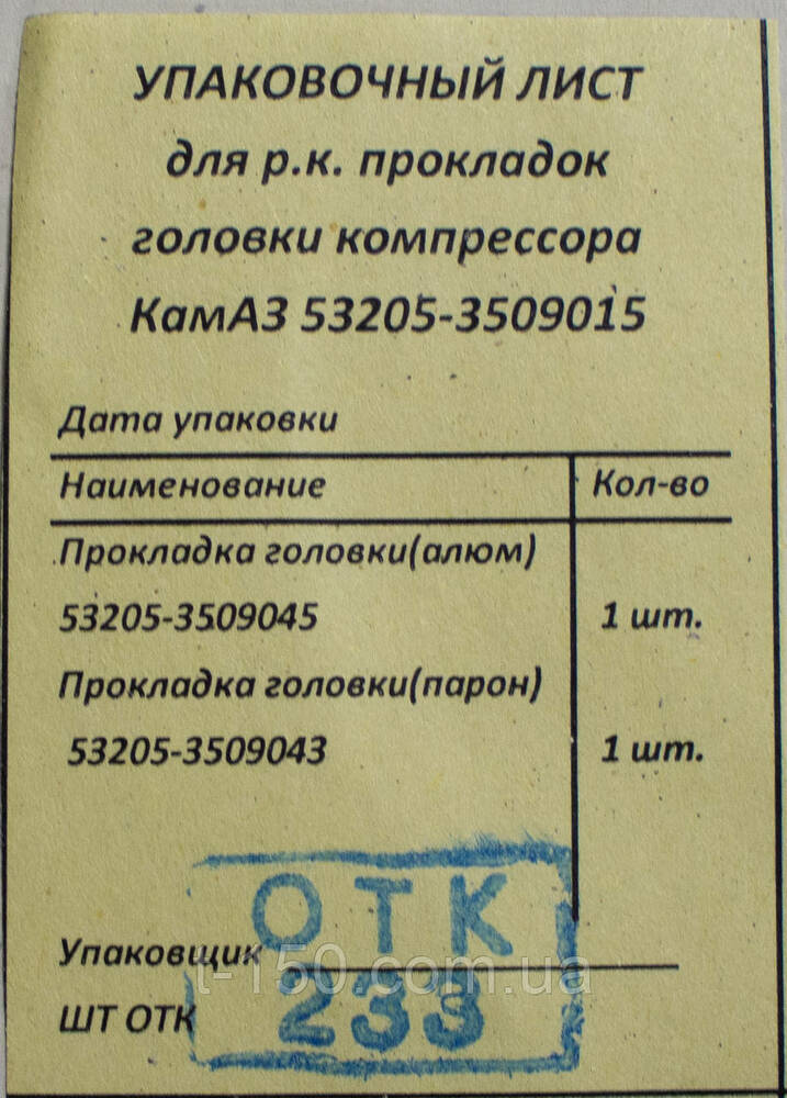 1.      53205-3509045 Прокладка головки (паронит) - 1шт.