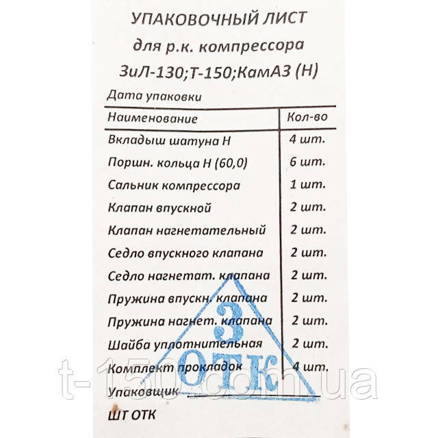 Ремкомплект компрессора КамАЗ ЗІЛ мАз Т-150, полный