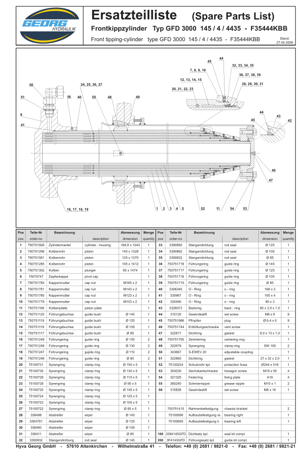 Ремкомплект на гидроцилиндр 145-4 GFD GEORG HYVA