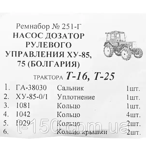 Ремкомплект насоса-дозатора ХУ-85 Т-16/Т-25 Б о л г а р и я