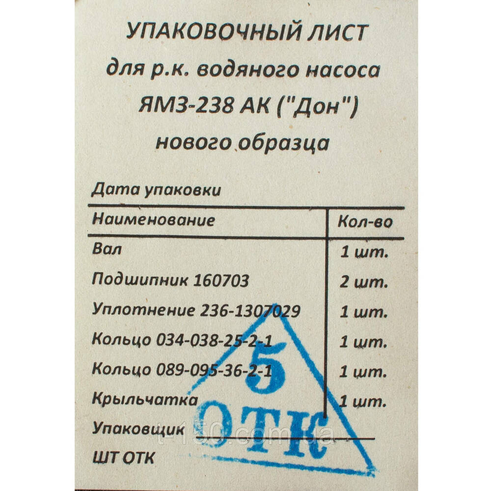 Ремкомплект насоса водяного ЯМЗ-238АК ДОН-1500, нового образца с крыльчаткой