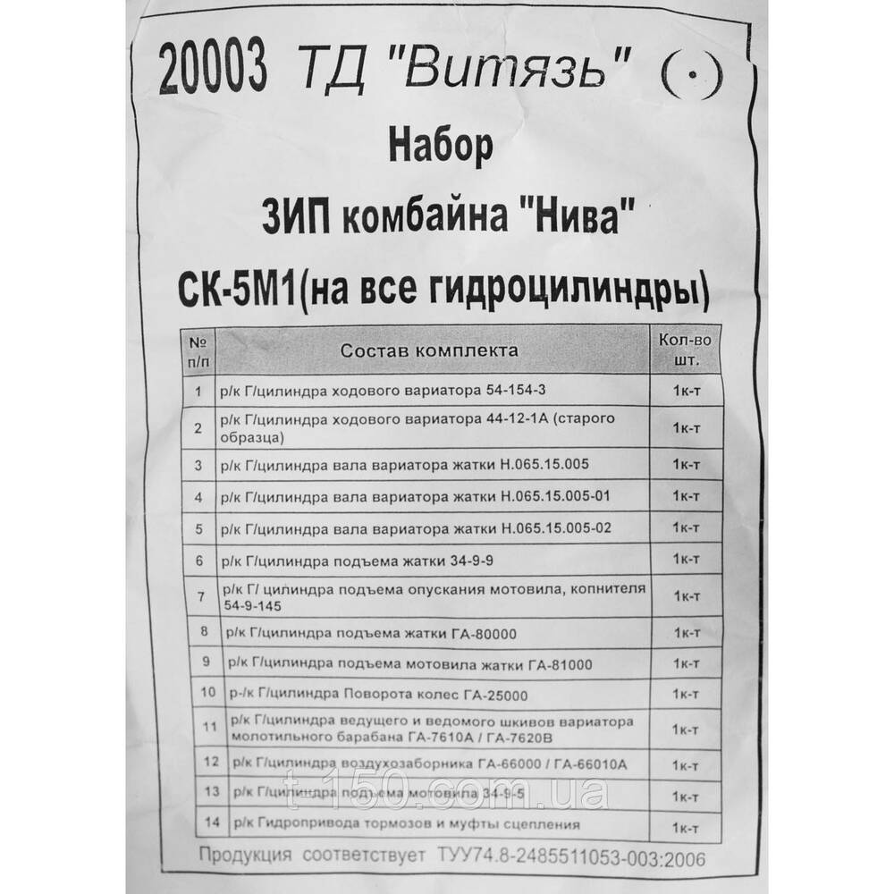 Ремкомплект РТИ комбайна Нива СК-5, на все гидроцилиндры, полный