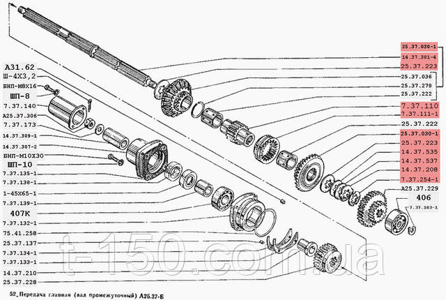 1. Вал первичный Т-25Ф Z=18                                       25фм.37.102 980