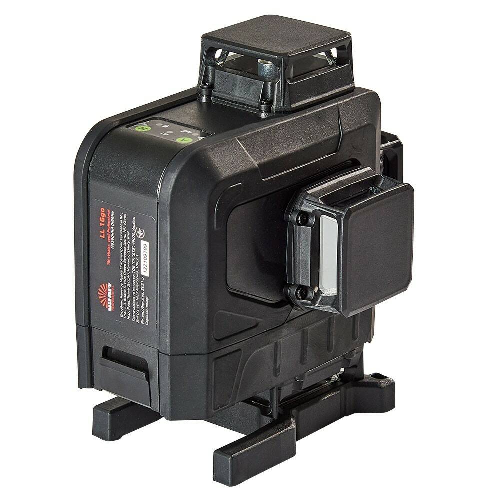 Рівень лазерний Vitals Professional LL 16go являє собою професійний лазерний рівень для побудови горизонтальних і вертикальних ліній. Ця модель проєктує дві горизонталі 360° та дві вертикалі 360°. Оскільки в моделі є нижня призма, її можна використовувати для роботи з плиткою та іншими підлоговими покриттями. Під час виробництва нівеліра використовується високоякісний діод торгової марки «Osram», який виробляється в Німеччині.