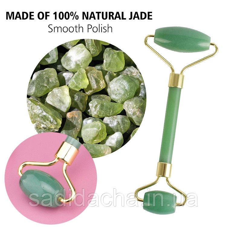 Ролик для массажа лица и шеи Jade Roller из Зелёного нефрита