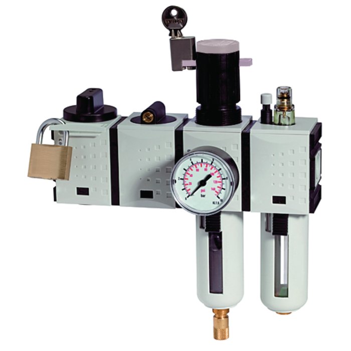 These compressed air service unit sets, comprising a ball valve with silencer, a start-up valve and one out of a pressure regulator, filter regulator or service unit, meet even the strictest requirements for operating reliability and accident prevention!