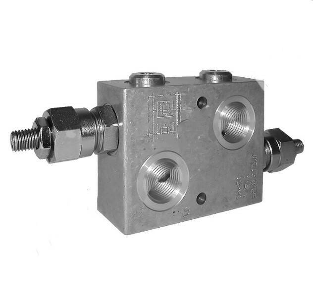 Состоит из двух предохранительных клапанов с пересекающимися сливными линиями. Клапан VMDI80 используется для понижения давления до определенной настроенной величины в двух портах привода. Клапан идеально подходит для обеспечения защиты от внезапных скачков давления, а также для настройки перепада давления в двух портах гидропривода. Шесть портов (две входных линии и четыре выходные) позволяют использовать всего один клапан для двух гидродвигателей.