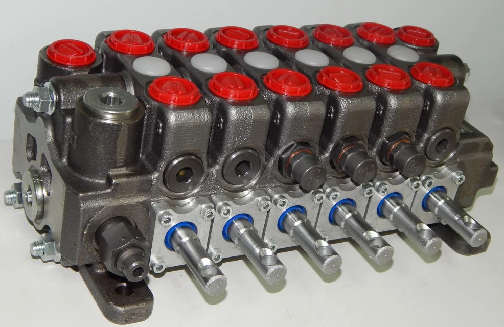 KV-17 секционный гидравлический распределитель, оснащенный клапанами обратного нагрузки в каждой секции, предохранительными регулируемыми клапанами с функциями antichoc & anti cavitation. Дополнительно может быть оборудован актуаторами для различных вариантов управления и несколькими вариантами положения золотника.