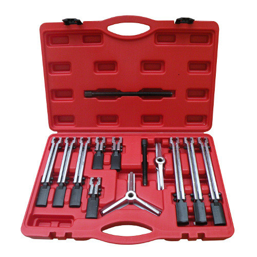 В набор съемников трехзахватных универсальных STANDART SK0220-1 входят захваты разной длины, которые позволяют работать труднодоступных местах (узких). Глубина захвата регулируется, тем самым обеспечивает работу с различными деталями. Захваты разработаны для внутреннего и внешнего захвата, а заостренные крюки по краям лап обеспечивают надежное сцепление со снимаемым элементом.