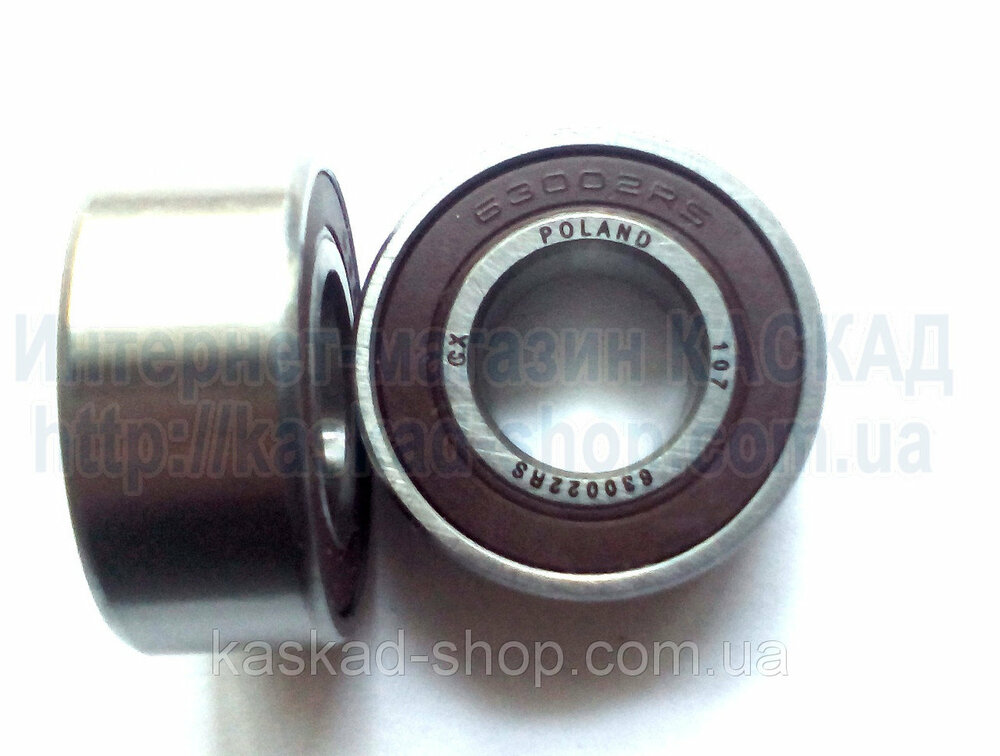 Подшипник 63002-2RS шариковый радиальный однорядный. Закрытый пластиковыми крышками с двух сторон.от проникновения пыли, грязи. Польского производителя высококачественных подшипников СХ.