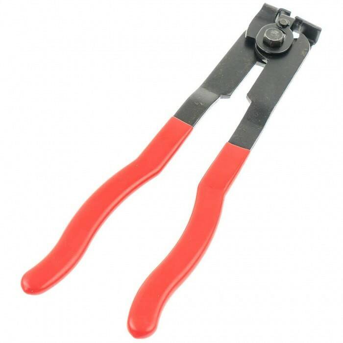 Обжимные плоскогубцы для зажимов на кольцевой уплотнительной оси, а также для хомутов охлаждения, топлива и т. д. Изготовлен из хромомолибденовой стали, никелирован, рукоятки с изоляцией.