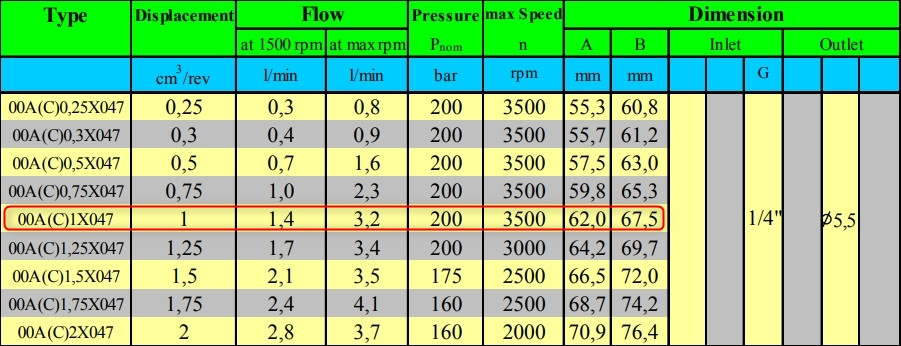 Шестеренный (шестерной) насос Hydro-Pack 00A(C)1X047 (00A1X047левый, 00C1X047 правый) (группа 00) широко применяются в промышленной гидравлике, а также устанавливаются в мини и микростанции, они обеспечивают сравнительно высокие давления и небольшие расходы, отличаются стабильностью характеристик и высокой долговечностью.