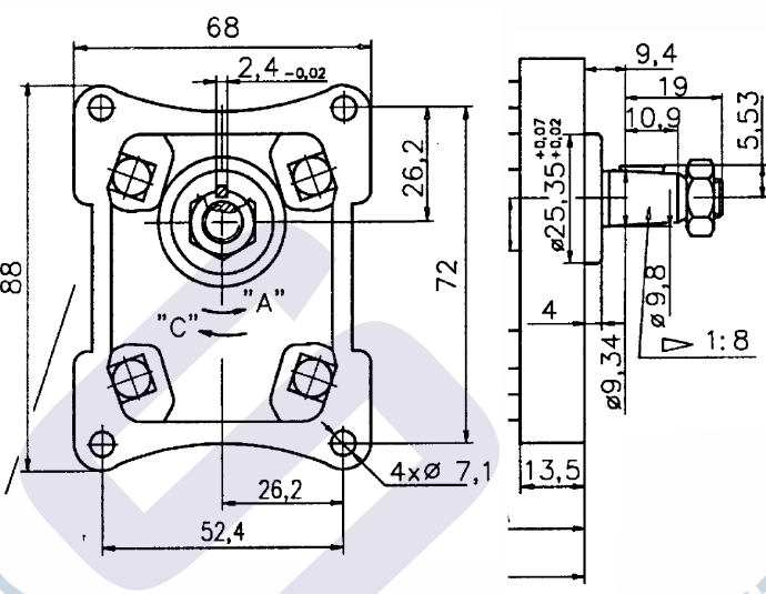 Гидравлический шестеренный насос Hydro-pack CO36XТH группы 1, с объемом 1.36 см3/об, имеет правое вращение (по часовой стрелке). Подходит к тракторам Fiat.
