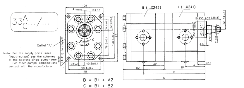 Шестеренчатый (шестерной) гидравлический насос Hydro-pack H 30A/C55X242 (серия 30 + серия 30)