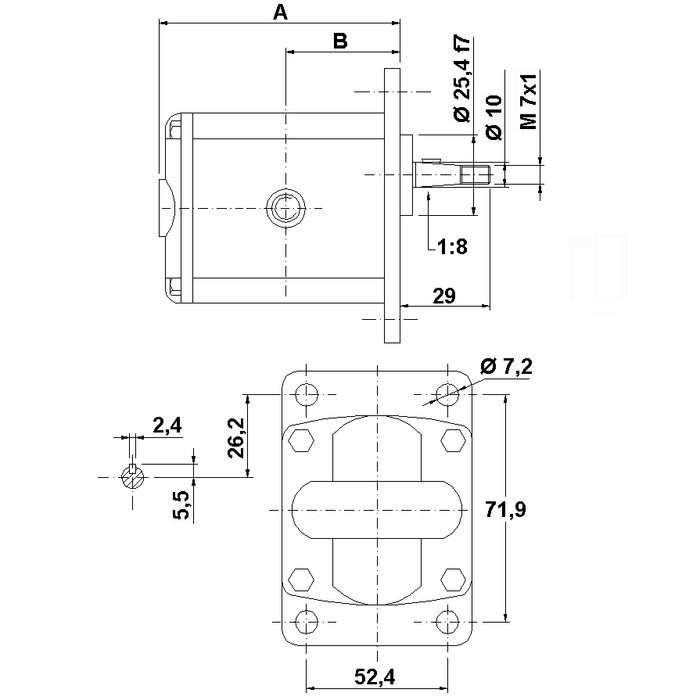 Европейский стандартный насос – посадочный размер 71,9 x 52,4 – Ø 25,4 – конический вал 1:8 – резьбовое соединение