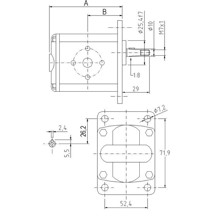 Европейский стандартный насос – посадочный размер 71,9 x 52,4 – Ø 25,4 – конический вал 1:8 – фланцевое соединение