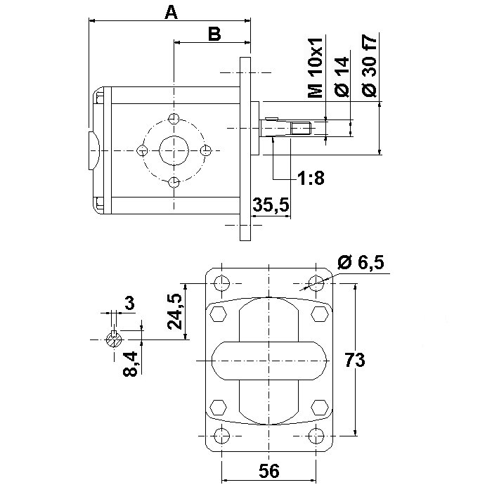 Европейский стандартный насос – посадочный размер 73 x 56 – Ø 30 – конический вал 1:8 – фланцевое соединение