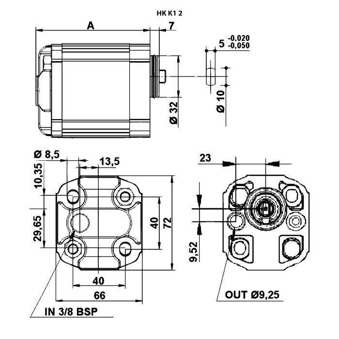 Европейский стандартный насос – посадочный размер 40 x 40 – Ø 32 плоскошлицевой вал