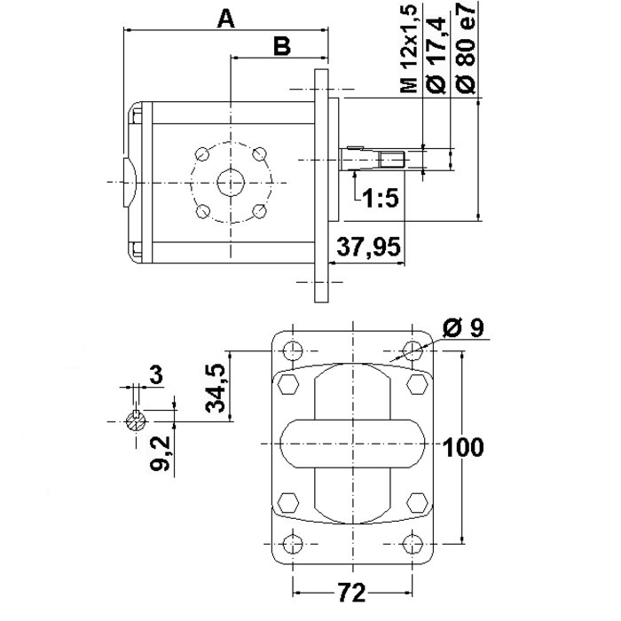 Немецкий стандартный насос – посадочный размер 100 x 72 – Ø 80 – конический вал 1:5 – фланцевое соединение
