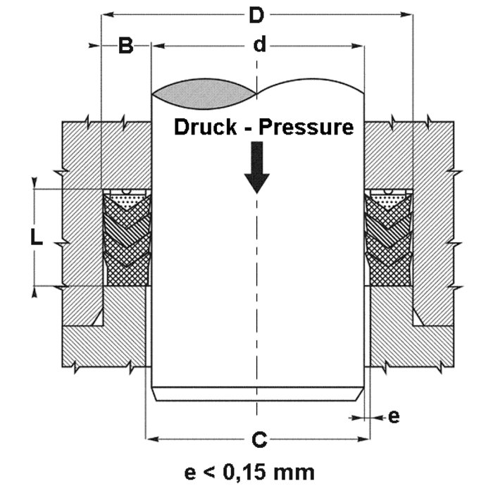(1) шевронная манжета 1 x нитрильный каучук, + 2 x
