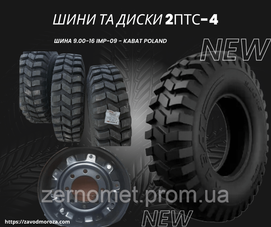 Шини, диски,колеса на причіп тракторний 2ПТС-4. Шина 9.00-16 IMP-09 125A8 12PR TT Kabat універсальний малюнок протектора - доріжка діагональна конструкція 12-ти шаровий каркас максимальне навантаження 1650 кг камера в комплект не входить Польські шини IMP-09 мають міцний довговічний каркас. Протектор зносостійкий з еластичної гуми. використовується для установки на тракторні причепи вантажопідйомністю 2-4 т. Також застосовується на несучих колесах причіпних с/г агрегатів: тракторний причіп 2ПТС-4 кормороздавачі коренезбиральні комбайни культиватори Шинами Ф-277 оснащують колеса причепа 2-ПТС-4, який агрегатується з тракторами тягового класу 0.9-1.4. Причепи тракторні сімейства ПТС набули широкого поширення за рахунок своєї простоти конструкції і універсальності. Тракторні причепи використовуються для перевезення сипучих і штучних вантажів в сільському господарстві і комунальних підприємствах. Вантажопідйомність шини Ф-277 10PR дорівнює 1650 кг, що досить для стандартного причепа 2-ПТС-4. Посиленна. Диск колісний тракторного причепа 2ПТС-4 (8 шпильок) фарбований. У нас широкий асортимент запчастин на тракторні причепи 2ПТС-4, 2ПТС-6 і до іншої с/г техніки. Вся продукція представлена на нашому сайті проходить ретельний контроль і виробляється тільки з високо якісних матеріалів. НАШІ ПЕРЕВАГИ: 100% наявність на складі. Ціни від виробника. Гарантія на запчастини. Знижки постійним клієнтам. Купуючи запчастини у нашої організації, Ви отримуєте стабільну і безперебійну роботу техніки!