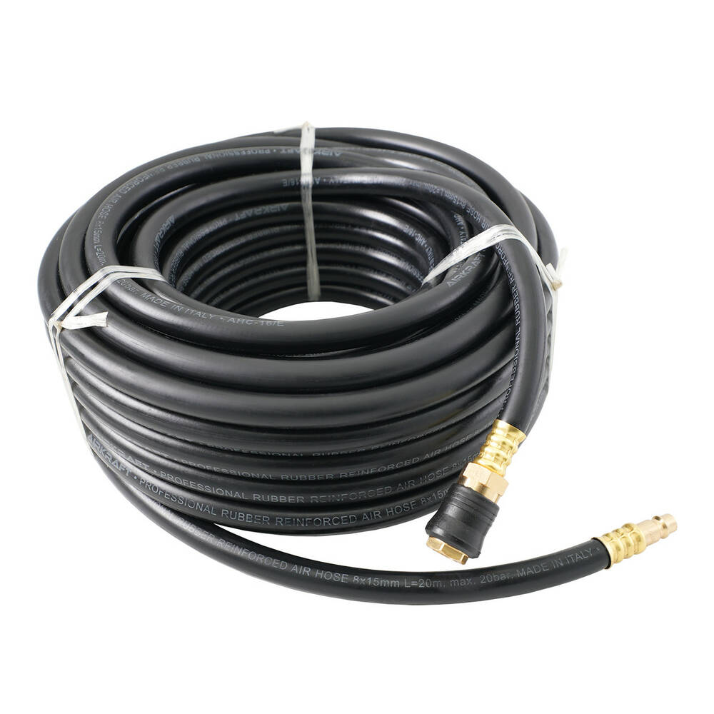 Шланг резиновый армированный воздушный (PROFI) AIRKRAFT AHC-16-A – профессиональный инструментальный шланг для подачи сжатого воздуха, разработанный для интенсивного использования в мастерских, на производстве и в строительных работах. Благодаря крепкой конструкции и качественным соединениям обеспечивает надежную работу даже при высоком давлении.