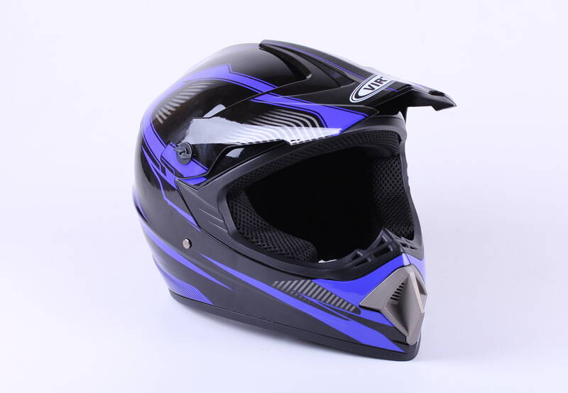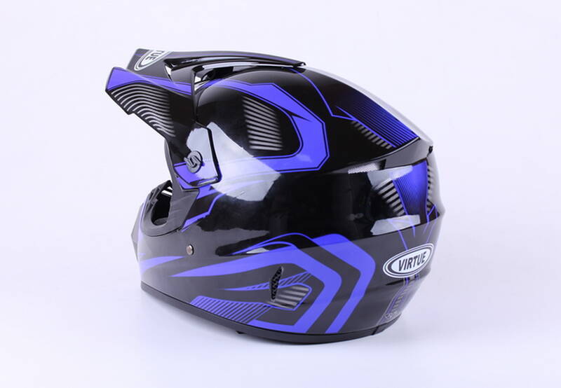 Данный шлем дополнит снаряжение мотоциклиста во время коротких поездок по городу или длительных путешествий. Шлем относится к типу кроссовых, рассчитаны под классы кросс и эндуро. Кроссовая модель не имеет визора, так как приспособлены на ношение специальных кроссовых очков. На корпусе шлема установлен выступающий защитный козырек, который защищает от солнца, дождя, веток и грязи, но оказывает заметное сопротивление встречному ветру. В нашем каталоге вы можете подобрать и купить кроссовые очки под понравившуюся модель самостоятельно или обратиться к консультанту. Съемные откидные щеки крепятся на заклепках. В корпус встроена система заслонок обеспечивающие вентиляцию. Корпус выполнен из термопластика высокого давления, устойчив к деформации и механическим повреждениям. Материал подкладки шлема изготовлен из плотного полистирола с поролоном. Подкладки обеспечивают комфорт и амортизацию при ударах. Стильный черно-синий цвет подчеркнёт вашу индивидуальность.Застежкой шлема является микрометрическая пряжка (трещотка). На нашем сайте вы можете купить шлем бренда VIRTUE по выгодной цене. Размер M подходит для большинства людей с обхватом головы от 57 до 58 см.