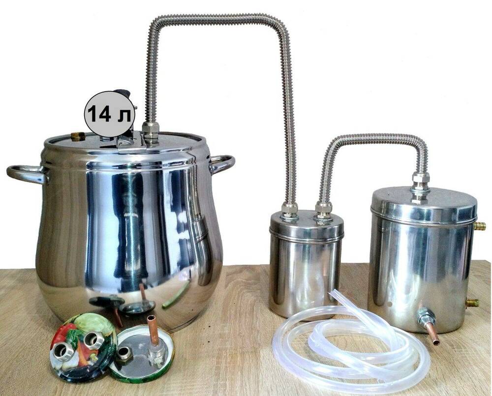 Добрый день господа, мы безостановочно совершенствуем наш аппарат, меняется его вид и функционал, и не всегда успеваеим обновлять стороние ресурсы, большая просьба посетить наш сайт, там всегда наиболее свежая модель и актуальная информация Дистиллятор 5в1.Дистиллятор классик, дистиллятор, для Дистилляции и дистилляции от производителя. Дистиллятор, дистиллятор из не ржавеющей стали с сухопарником не дает привкусов, для Дистилляции и дистилляции. Надежен, прост в обращении, экономичен, прошел все необходимые проверки. Наш товар является уникальным предложением на рынке, так как универсален и позиционируется как многофункциональный прибор:Новый Дистиллятор от производителя с документацией, объём бака 9/12/15/17 литров, материал нержавеющая сталь и медь, проточное охлаждение, подходит для всех типов нагревающих поверхностей...Доставка по всей территории Украины Новой Почтой. Дистилляторы аппараты серии предназначены как для начинающих, так и для опытных пользователей. Они обладают высоким качеством материалов, улучшенными техническими характеристиками. В процессе перегонки дистиллятосодержащих смесей все устройства обеспечивают практически полное отсутствие характерных запахов в помещении и высочайшее качество готового продукта. Дистилляторы аппараты производятся только из высококачественной нержавеющей стали. . Таким образом Дистиллятор отделяет легкокипящие компоненты (испаряемый дистиллят) от тяжелокипящих (вода, сивушные масла), в результате чего в конечном продукте (дистилляте) повышается концентрация ДИСТИЛЛЯТА и, соответственно, снижается концентрация воды и сивушных масел. Дело в том, что в начале кипения дистиллят из неё выкипают преимущественно легкокипящие компоненты, а по мере кипячения концентрация не нужных нам тяжелокипящих компонентов возрастает .. Да и в начале кипения тяжелокипящие компоненты все равно присутствуют в паре за счет испарения, значительно ухудшая качество крафтовых напитков.Система Дистиллятора основана на трех этапах: