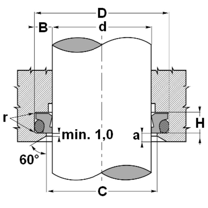 WTFP 1400 BPU40447 140 156.0 9.5 142.5 2.0 вначале сложить по форме подковы уплотнительное кольцо круглого сечения, а затем кольцо из ПТФЭи вдавить в приемный паз (от 30 мм)