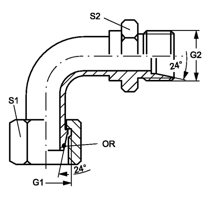 Наружный конус 24° с кольцом круглого сечения