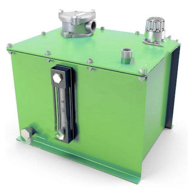 Маслобак данного объема предназначен для работы в составе маслостанций с подачей до 3 л/мин. Внутренние и внешние поверхности гидробака окрашены порошковой краской. Внутри бака есть перегородка, предотвращающая вспенивание масла. Стальные гидравлические баки объемом 10 литров представлены в двух вариантах.