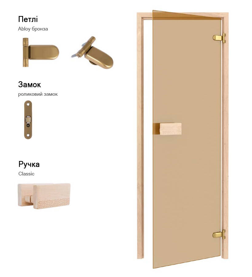 Стеклянная дверь для бани и сауны Classic бронза 70/200 (уценка)