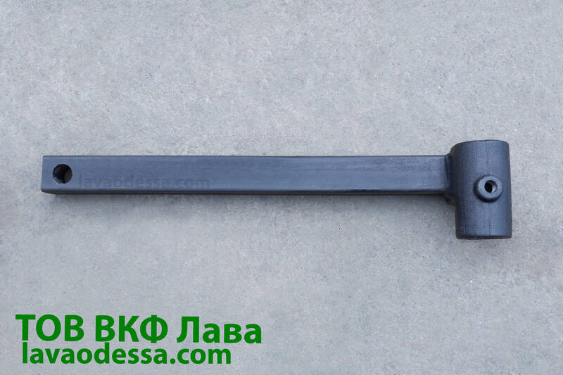 Стойка колеса ПНУ 06.030 - применяется на плугах ПЛН 5-35; ПНБ 5-40. Служит для крепления колеса к раме плуга. Крепится к раме при помощи державки и скобы. Изготовлена из квадрата 50х50 сталь 45. Вес - 10,2 кг.