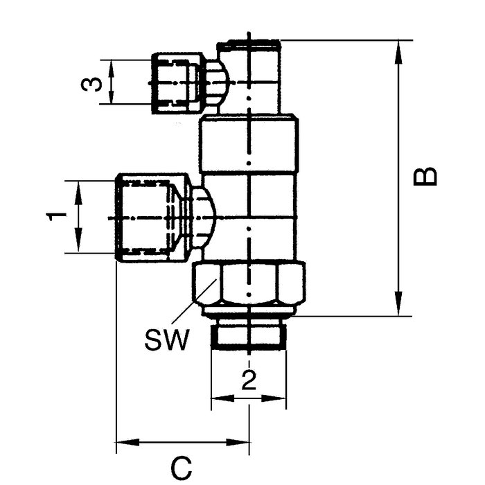 | Наименование | Port 1 | Port 2 | Соединение 3 | B mm |