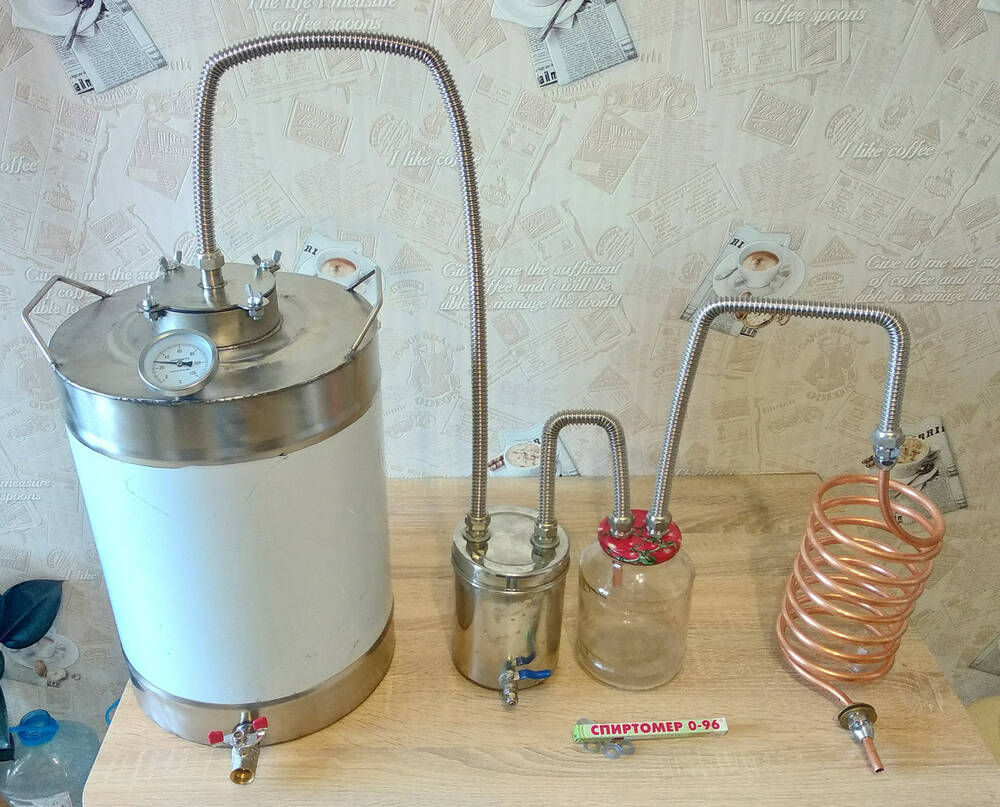 Дистилляторы ручной работы изготовлены из нержавеющей стали и меди,