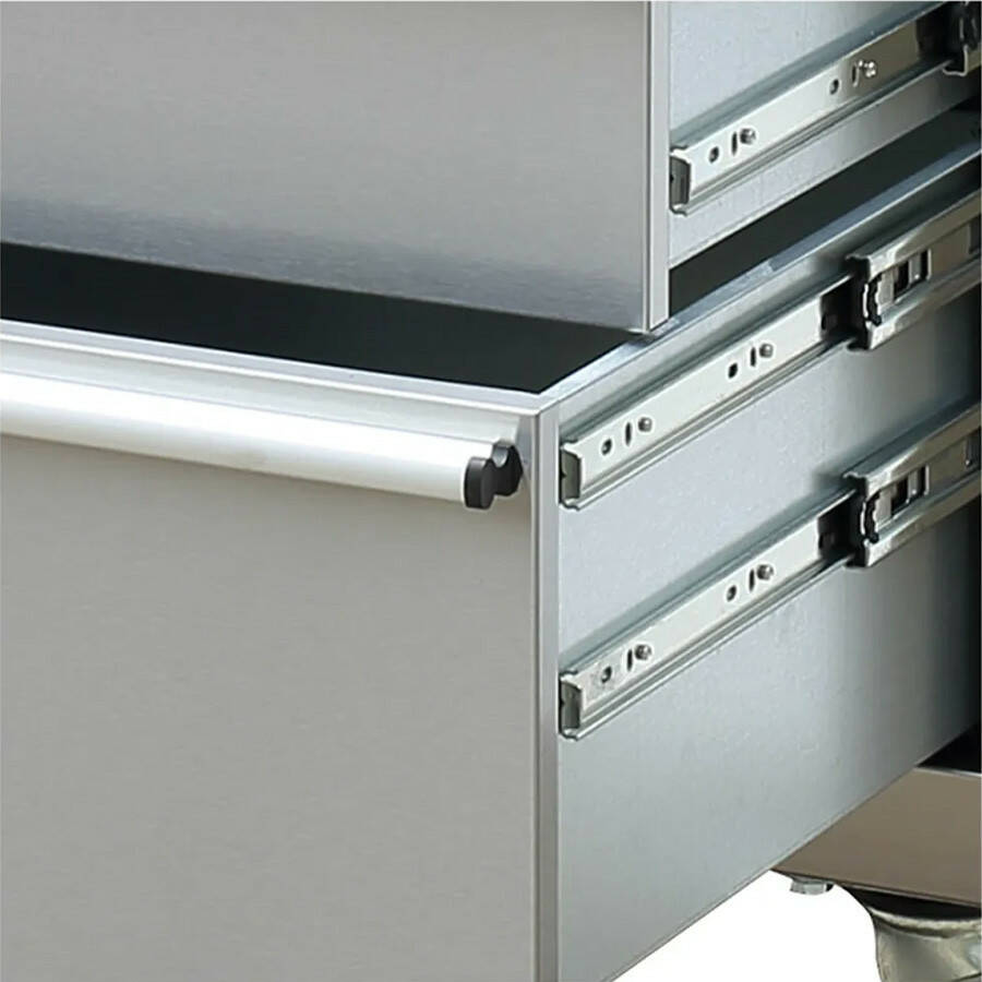 Механизм выдвижения: Телескопические направляющие для плавного открывания ящиков.