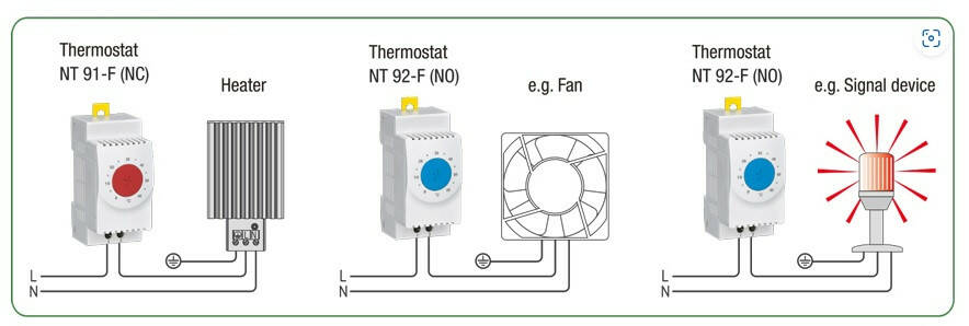 NT 91-F: Термостат (контакт нормально замкнутый); контактный прерыватель для регулирования нагревателей. Контакт размыкается при повышении температуры