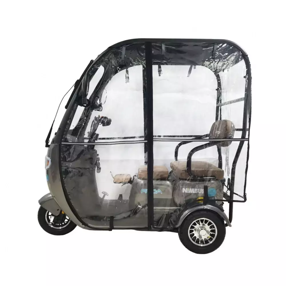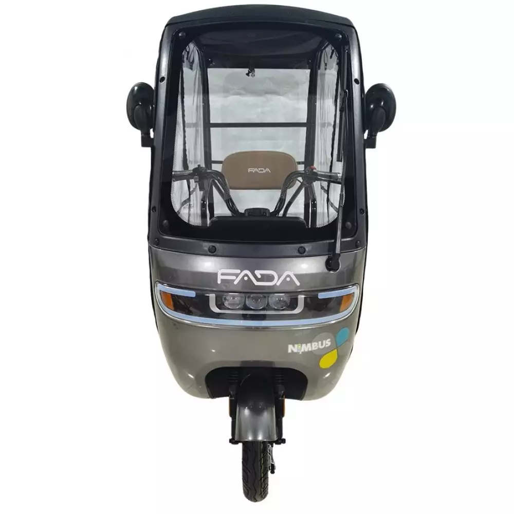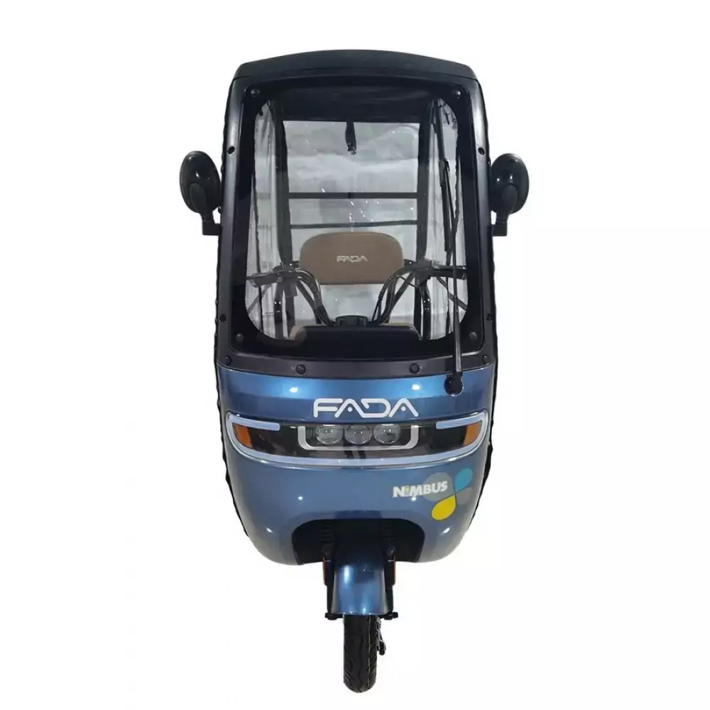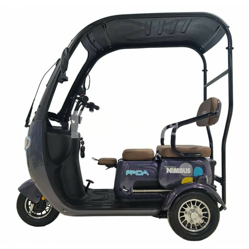 Трёхколёсный электровелосипед Фада FADA NIMBUS 800W электротрайк - Электротрайк FADA NiMBUS является новинкой 2024 года! Данная модель представляет собой сочетание доработок технической составляющей моделей электротрайков FADATM и вариант, который реализован в корпусном исполнении с лобовым стеклом, крышей и может предлагаться в комплектации со съемным, мягким периметральным дождевиком из виниловой пленки. Такое исполнение является сочетанием практичности и защищенности от возможно внешних неблагоприятных условий при его эксплуатации. Конечно, честно говоря, надо сделать акцент, что данная модель не имеет задатков вездехода и эксплуатировать ее будет нужно с понятием того, что все же это прежде всего электрический трайк, транспортное средство для перемещения по обычным дорогам, только изготовленное с учетом безусловной возможности использования даже в холодное осенне время в период осадков и ветров.
