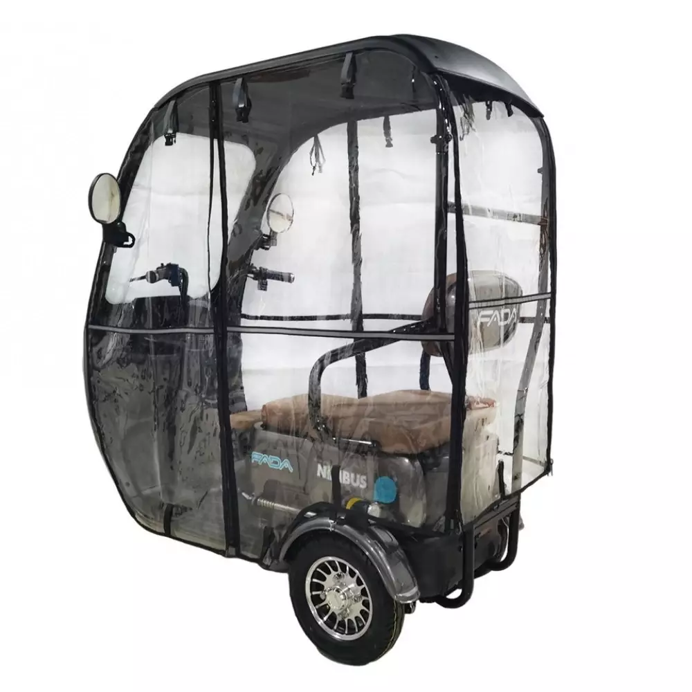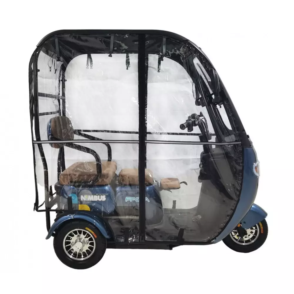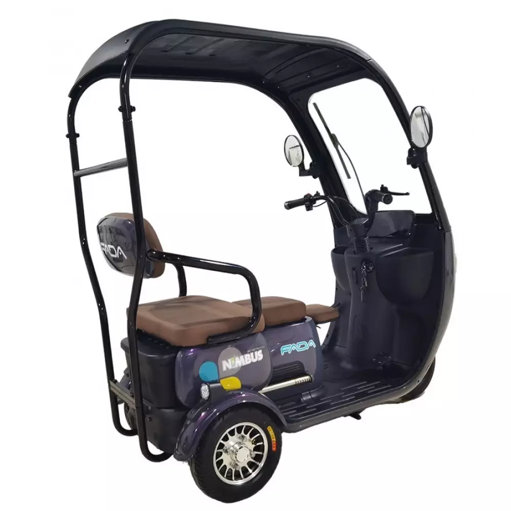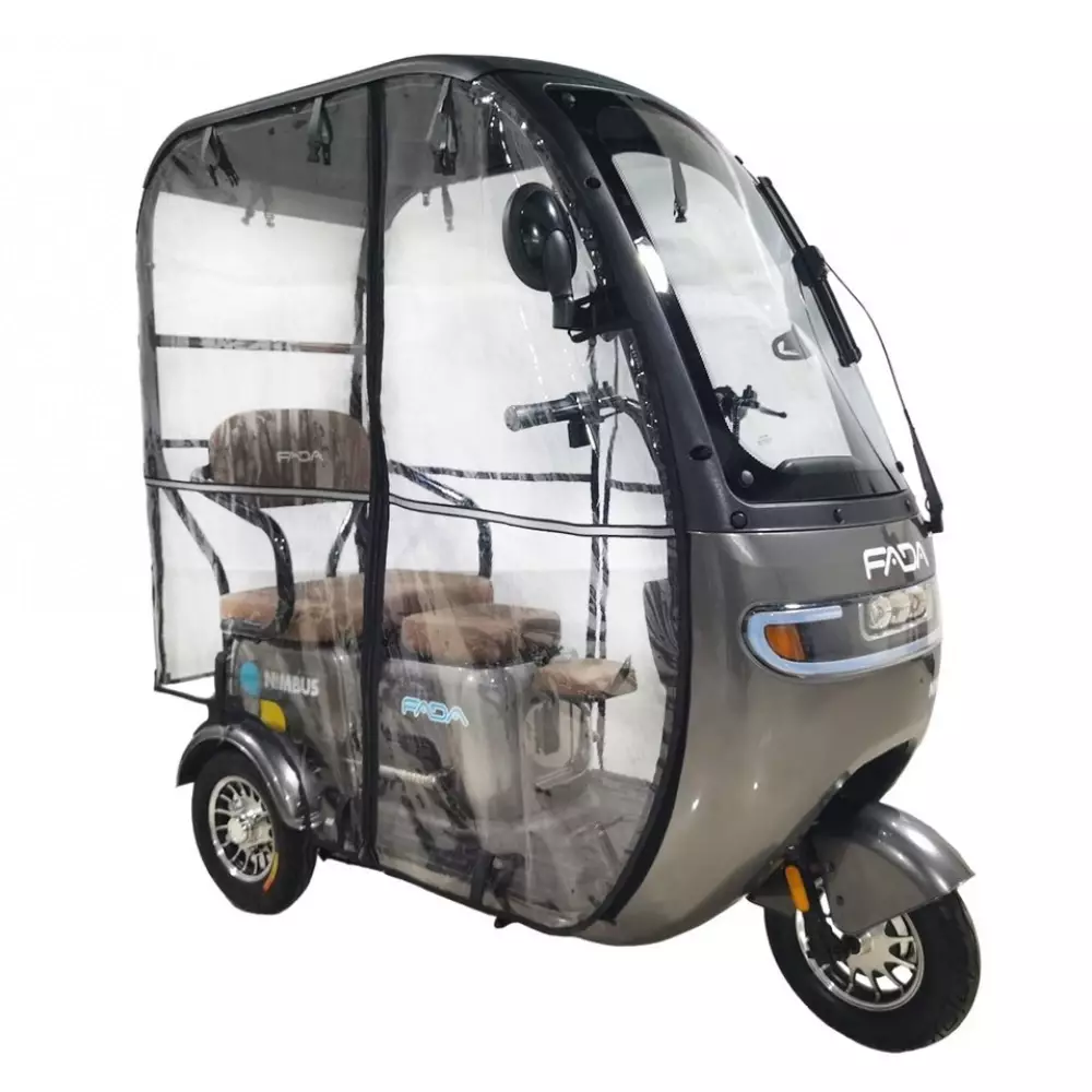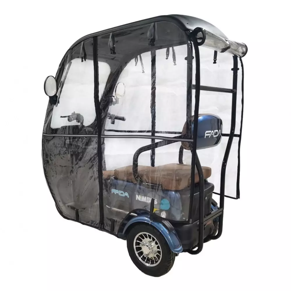 Трёхколёсный электровелосипед Фада FADA NIMBUS 800W электротрайк - Электротрайк FADA NiMBUS является новинкой 2024 года! Данная модель представляет собой сочетание доработок технической составляющей моделей электротрайков FADATM и вариант, который реализован в корпусном исполнении с лобовым стеклом, крышей и может предлагаться в комплектации со съемным, мягким периметральным дождевиком из виниловой пленки. Такое исполнение является сочетанием практичности и защищенности от возможно внешних неблагоприятных условий при его эксплуатации. Конечно, честно говоря, надо сделать акцент, что данная модель не имеет задатков вездехода и эксплуатировать ее будет нужно с понятием того, что все же это прежде всего электрический трайк, транспортное средство для перемещения по обычным дорогам, только изготовленное с учетом безусловной возможности использования даже в холодное осенне время в период осадков и ветров.