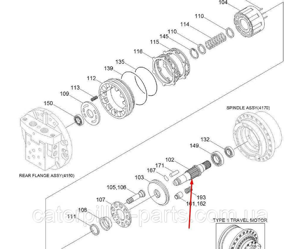 1.405-00074 Вал гідромотора ходу DOOSAN Solar 175. Ремонт спецтехніки Doosan проводиться на нашій спеціалізованій сервісній станції (Київ, Україна). Купити запчастини для спецтехніки у Києві можна з нашого складу. Всі запчастини ми поставляємо безпосередньо від виробника. Ремонт мостів, трансмісії та двигунів проводить наш сервісний центр (Київ, Україна).1.405-00074 Вал гідромотора ходу DOOSAN Solar 175