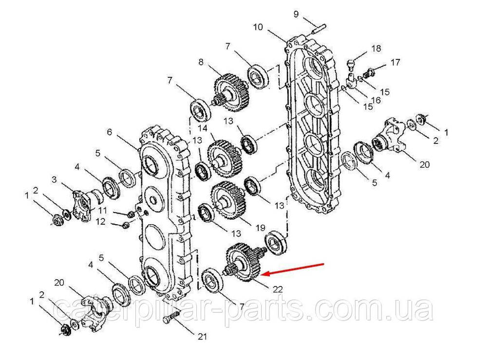 1450873 Вал шестерні КПП Caterpillar (Кат). Купити запчастини для мостів та КПП Caterpillar можна у Києві безпосередньо з нашого складу. Всі запчастини до мостів та трансмісій Кат ми поставляємо безпосередньо від виробника. Ремонт мостів та трансмісії Кат проводить наш сервісний центр з ремонту спецтехніки та двигунів (Київ, Україна).