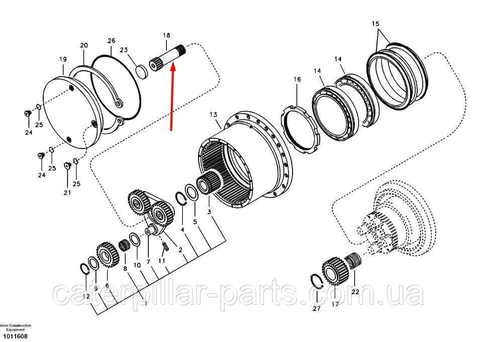 Вал-шестерня гідромотора ходу екскаватора Volvo ECR58