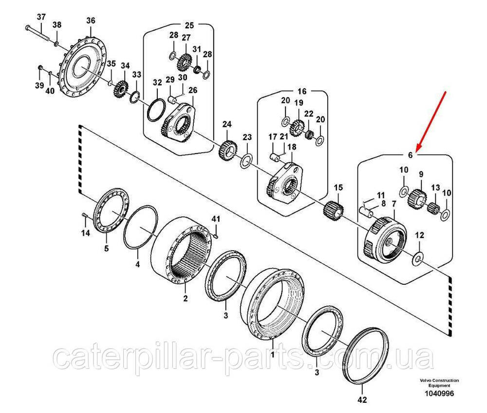 14599933 Третя планетарна передача редуктора VOLVO EC300E. Купити запчастини для спецтехніки Volvo можна у Києві безпосередньо з нашого складу. Всі запчастини в мости та КПП ми поставляємо безпосередньо від виробника. Ремонт мостів та трансмісії проводить наш сервісний центр з ремонту спецтехніки та двигунів (Київ, Україна).