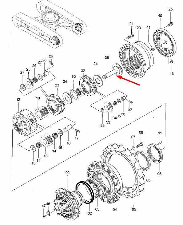 2043851 Вал редуктора ходу Hitachi. Купити запчастини
