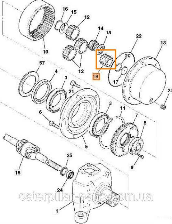 Солнечная шестерня бортового редуктора (ступицы) экскаватора-погрузчика JCB 3CX Super, 4CX. Одевается через втулку на ступичную полуось. Служит для усиления и передачи вращающего момента от полуоси на планетарные шестерни. Рекомендуется менять при износе, трещинах, сколах или при замене планетарных шестерен. Кросс номер: 450/12403.