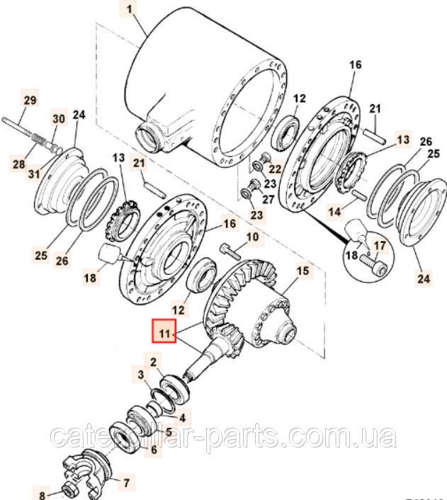 Главная пара 13/33 на JCB 458/20670.Главная пара служит для снижения оборотов передаваемых с двигателя на колёса.В среднем снижает обороты в 4 раза.Главная пара является неотъемлемым элементом трансмиссии любого транспортного средства.Она оказывает непосредственное влияние на оперативность разгона авто, его максимальную скорость движения, а также на уровень расхода топлива.