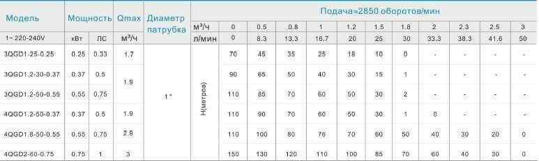 діаметр свердловини: 3QGD від 95 до 110мм;