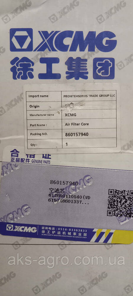 612600110540 Фільтр повітряний, комплект, XCMG на двигун Weichai WD615, LONGGONG