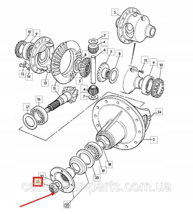 Гайка хвостовика главной пары экскаватора - погрузчика JCB 3CX - 4CX