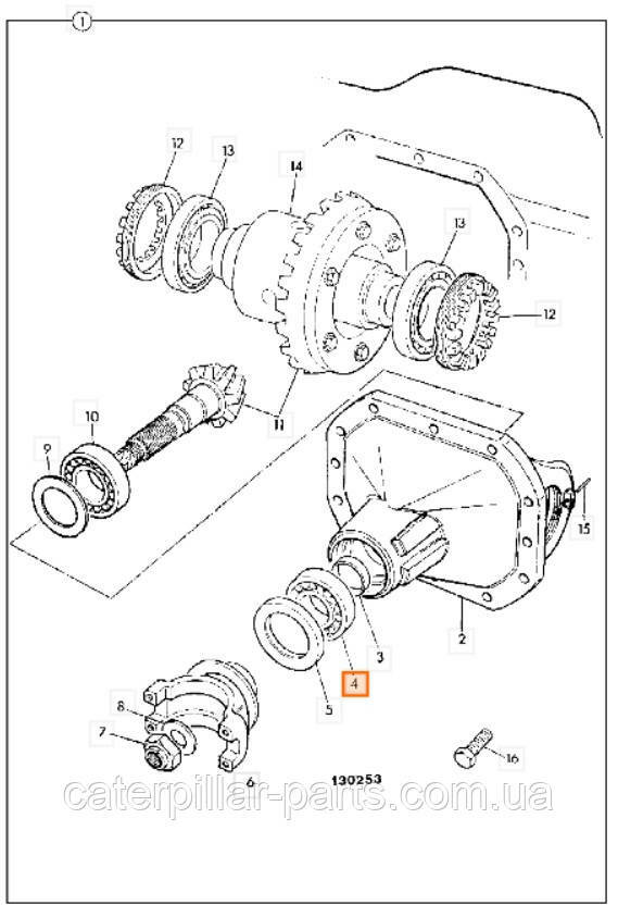 Подшипник хвостовика главной пары в узел дифференциала переднего моста экскаватора-погрузчика JCB 3CX. Представляет собой роликовый радиально-упорный однорядный подшипник. Предназначен для свободного вращения вала ведущей шестерни главной пары в корпусе дифференциала переднего моста. Устанавливается на вал шестерни, ближе к "хвосту". Рекомендуется менять при износе, люфте или появлении шума.